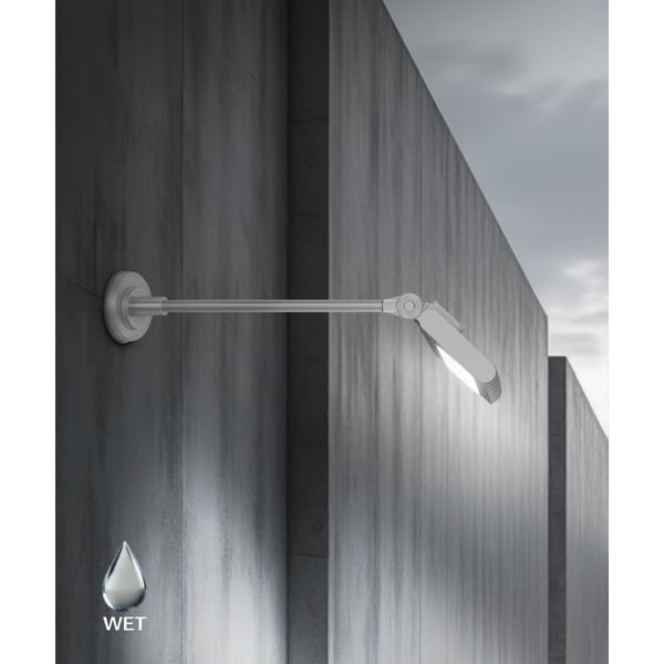 This commercial LED outdoor sign light by Alcon Lighting features a diecast aluminum housing with a powder coat finish. Wattage and color temperature switches on the back of the fixture offer customized illumination with color temperature ranging from 3000K to 5700K. The sign light offers a CRI of 80+ for accurate color representation, with 0-10V dimming capability and a 120° x 90° beam spread. The IP65-rated fixture is suitable for wet locations, making it ideal for lighting exterior signs.