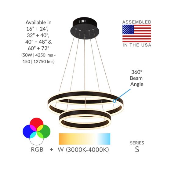 Make a statement in commercial interiors with Alcon Lighting's 3-tier chandelier ring pendant light. The LED pendant affords soft white 3000K illumination with ELV dimming. Suspension kit has a round canopy with a 168" adjustable-height aircraft cable mounting that's ideal for high ceilings.