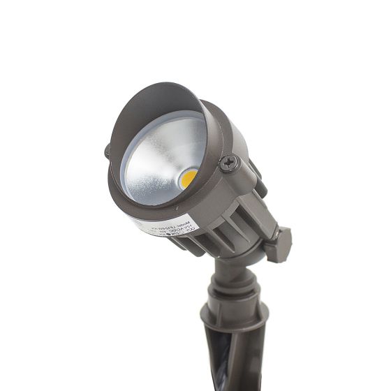 Designed for targeted outdoor illumination, this LED uplight features a 316-grade stainless steel housing and an integrated shroud to minimize glare. A heat-resistant convex glass lens and silicone gasket ensure weather-tight performance even in demanding environments. The LED landscape light delivers 500 lumens at a static color temperature from 2700K to 5000K. The fixture includes an 8” stainless steel spike for easy installation, with optional mounting accessories available, including a pedestal, canopy and 6" to 24" stem.